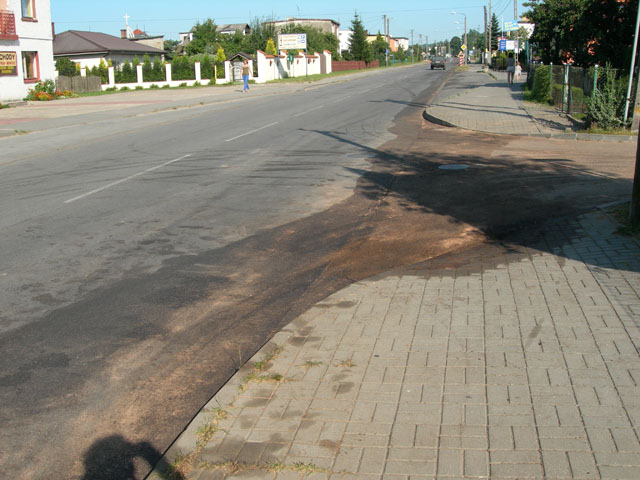 Na ul. Kwiatowej i na krótkich odcinkach przylegających do niej ulic, zwłaszcza Kolejowej widoczne były rozległe plamy po usuniętym i zmytym oleju. Upalny dzień sprzyjał szybkiemu wysychaniu nawierzchni i zachowaniu przez drogę przyczepności. Na powierzchni rzeki Łeby nie było śladu zanieczyszczeń ropopochodnych. Pozostał nierozwiązany problem niebezpiecznego przejazdu kolejowego…