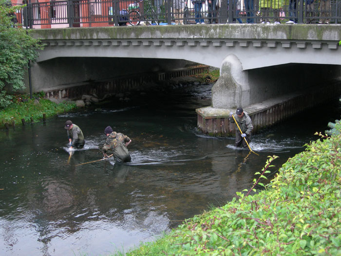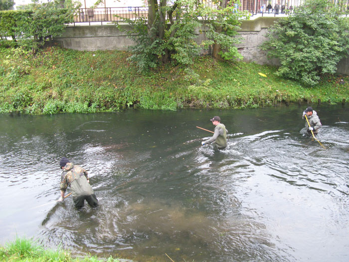 W pierwszą sobotę października członkowie Towarzystwa Przyjaciół Rzeki Łeby i Klubu Muchowego „Dolina Łeby” oczyścili zespół tarlisk „Trzy Mosty”, przygotowując go do nadchodzącego tarła troci. Koło PZW Lębork-Miasto dostarczyło specjalnie skonstruowane do tego celu grabie. Grupa ludzi w spodniobutach, pracująca w rzece Łebie w centrum miasta, wzbudziła żywe zainteresowanie przechodniów, którzy prześcigali się w domysłach na temat celu akcji. Niektórzy zorientowali się, że sprzątane są tarliska troci, inni byli przekonani, że trwają poszukiwania topielca lub zaginionego pierścionka…