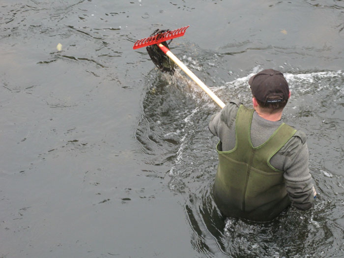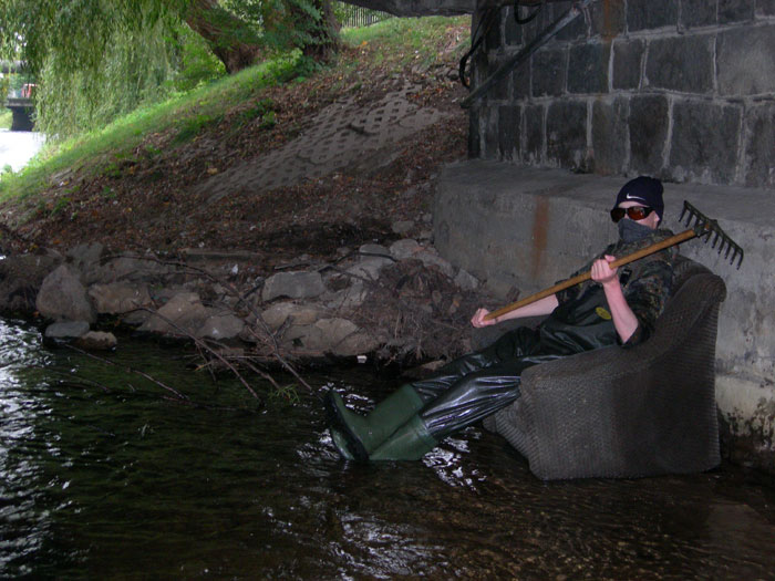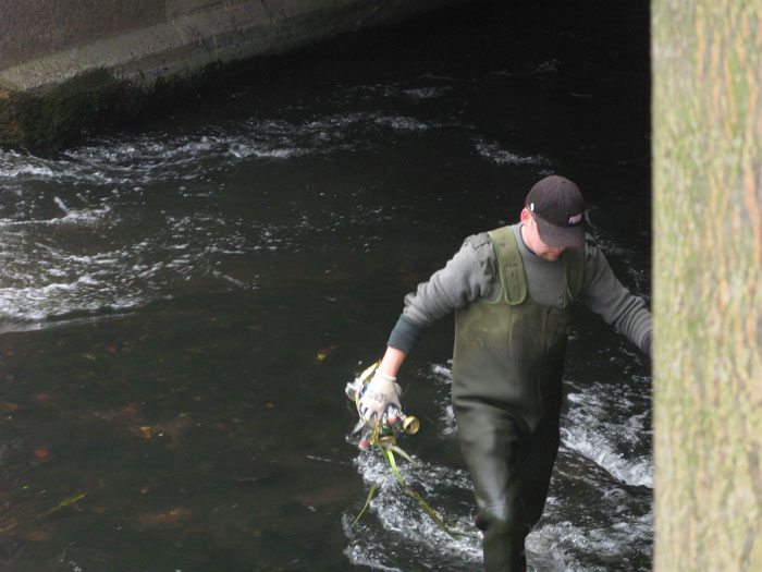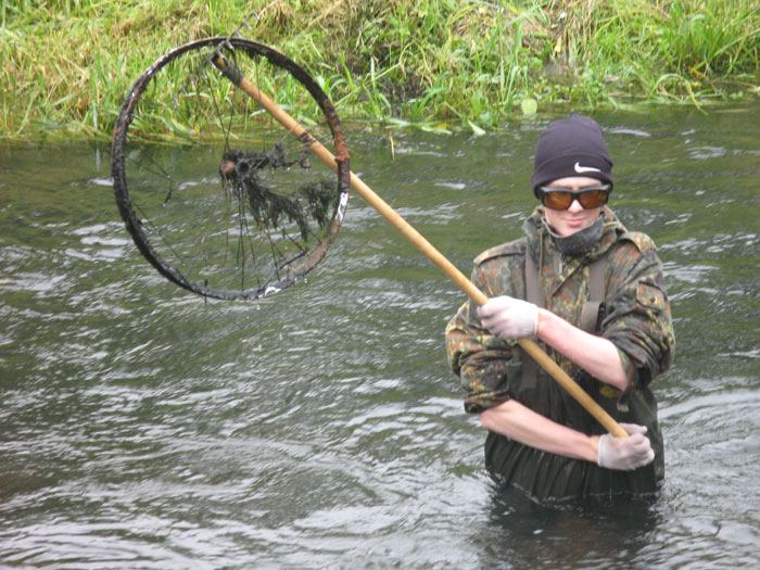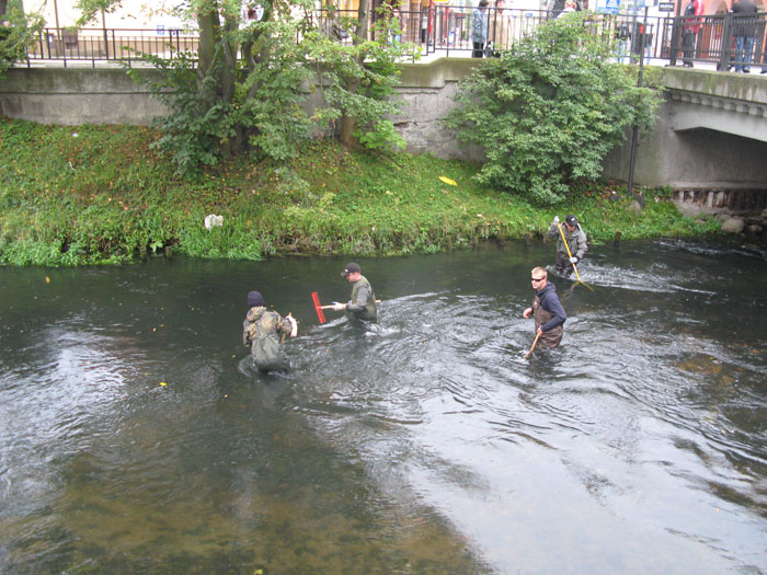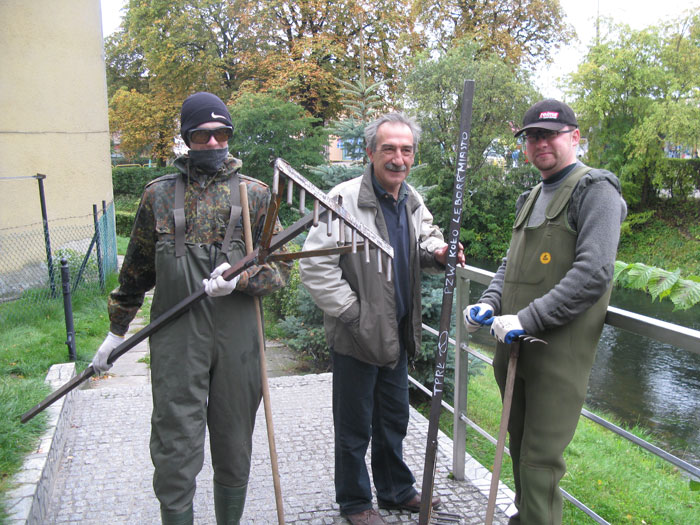 Podobnie jak w roku ubiegłym kilku ochotników oczyściło żwirowo-kamienną pospółkę zalegającą dno rzeki powyżej mostów w ul. Staromiejskiej, Armii Krajowej i al.Wolności, pracowicie wydobywając śmieci, które wcześniej ktoś pracowicie powrzucał… Z rzeki wyciągnięto m.in kilkanaście płyt chodnikowych, opony, metalowe rury, butelki, telefon komórkowy, gipsową figurkę, części roweru itp. Serdecznie dziękujemy wszystkim uczestnikom akcji.
