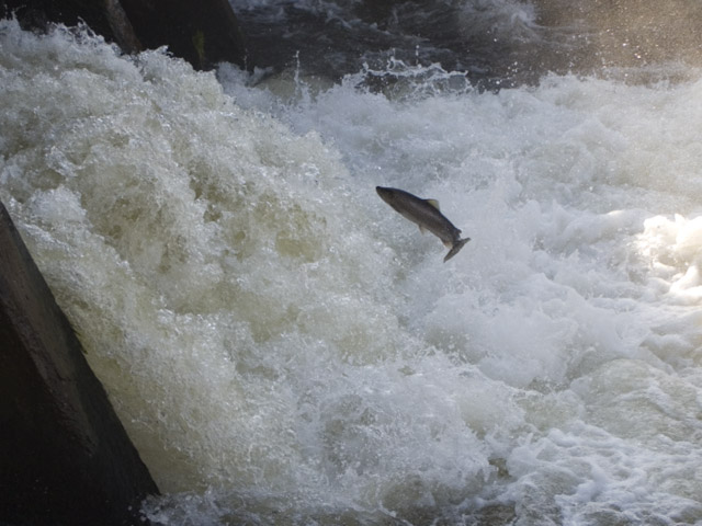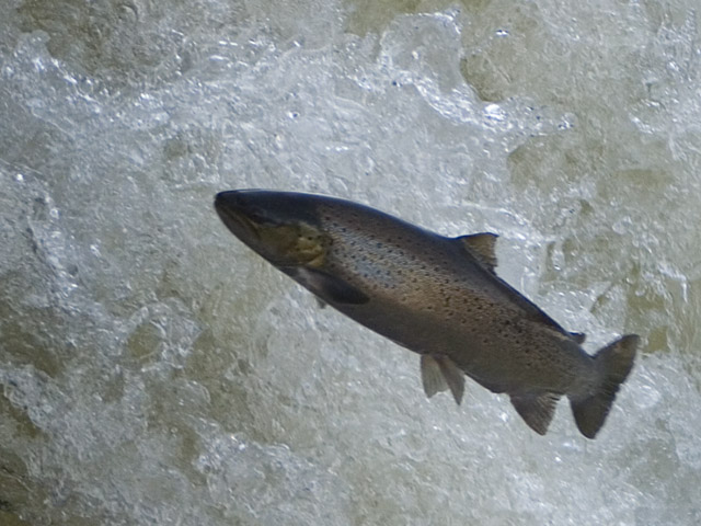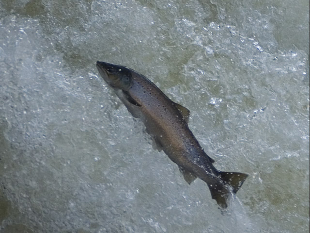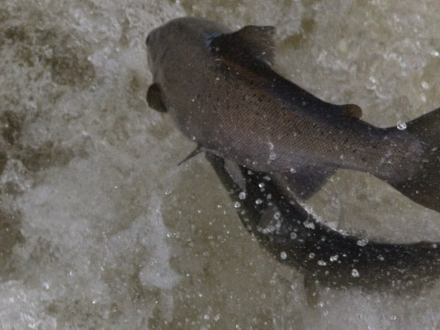 Trociowe gody trwają, na tarliskach codziennie pojawiają się nowe osobniki. Intensywność ciągu tarłowego łatwo można ocenić w Chocielewku, gdzie część ryb wędruje przepławką, a część z rozpędu forsuje piętrzenie, korzystając ze specjalnej konstrukcji zainstalowanej w środkowym przęśle jazu. Poniżej prezentujemy wykonane tam zdjęcia autorstwa Pana Bogusława Kotlarza.