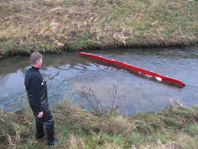 Pokaz zorganizowała firma z Gdyni, zajmująca się m.in. dystrybucją produktów czeskiego producenta REO AMOS, przeznaczonych do prewencji i likwidacji awarii oraz dla bezpiecznego i czystego środowiska. W pokazie udział wzięli: wójt Gminy Nowa Wieś Lęborska oraz przedstawiciele: Komisji Ochrony Środowiska, Rolnictwa i Leśnictwa Rady Powiatu Lęborskiego, Starostwa Powiatowego, PZW, TPRŁ oraz WZMiUW. Zaprezentowano również segment zapory drabinkowej RE 0788 do użycia podczas akcji i stałej prewencji na ciekach z przepływem nurtu do 1,3 m/s. Pokaz związany był z poszukiwaniem najlepszego wariantu systematycznego oczyszczania dorzecza Łeby z zanieczyszczeń stałych.