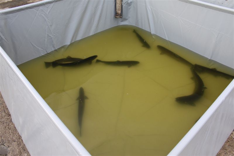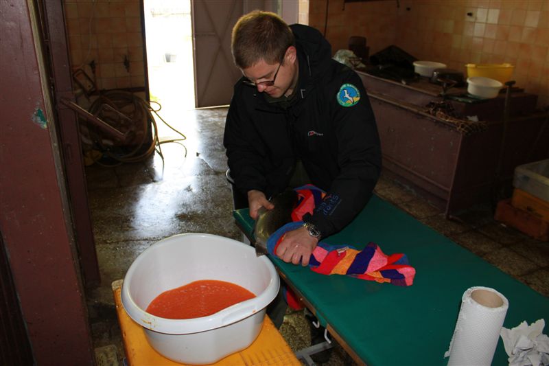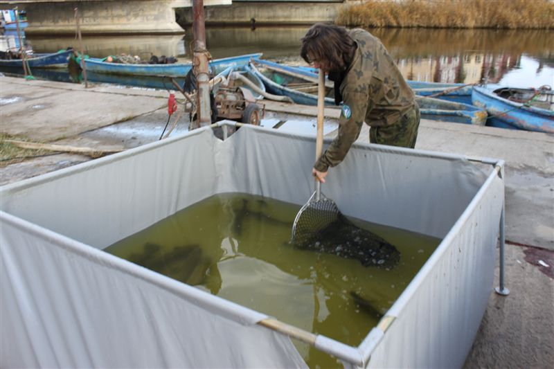 Po pobraniu ikry i oznakowaniu ryby odpoczywają w dużych basenach z wodą.
