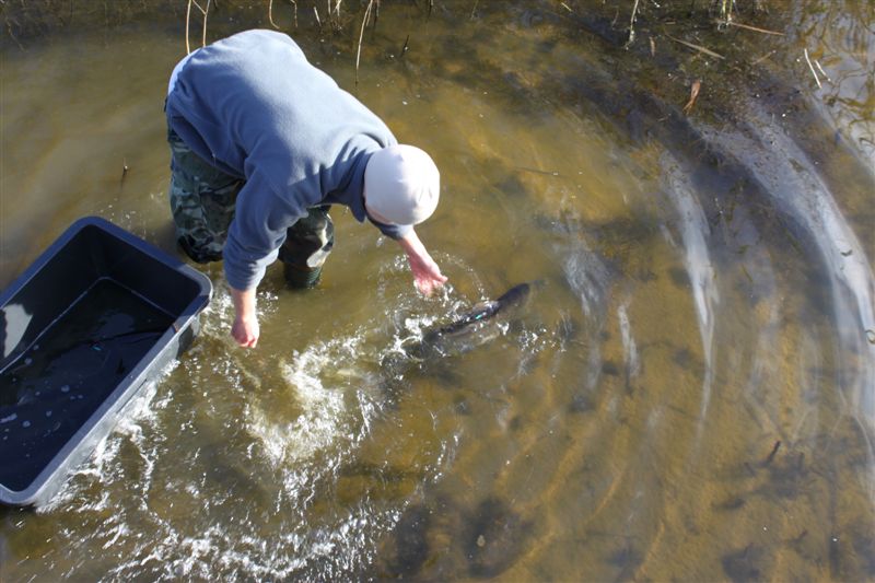 Pracownik SPN pobiera ikrę.
