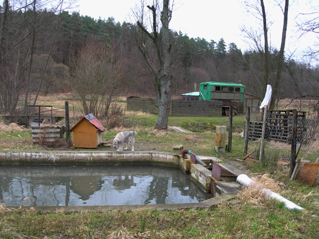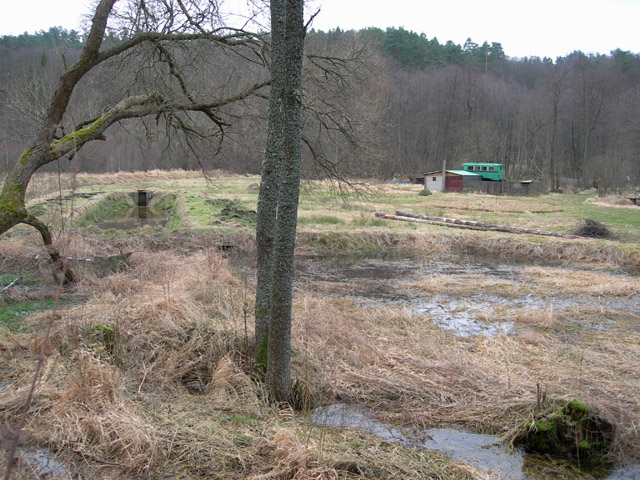 Kolejny, tym razem legalny, ale bałaganiarski obiekt znajduje się poniżej miejscowości Unieszyno w Obszarze Chronionego Krajobrazu nr 3. Wyrazistymi akcentami tej hodowli nad Unieszynką są: bonanza (?) ustawiona na postumencie, jakieś szopy, walające się opony i stare materiały budowlane, rozwalony zbiornik. Teren pokopany ziemnymi stawami i osadnikami na pewno nie został ochroniony przed oszpeceniem. Całość nieczynna. Jedynie 2 psy oszczekują okoliczną pustkę.