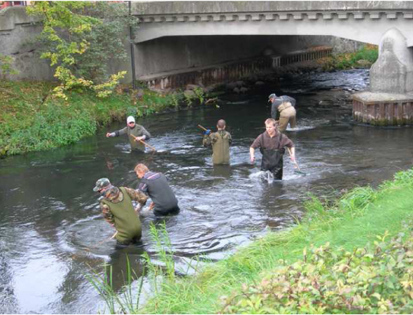 Po wywalczeniu w 2004r. we współpracy z Klubem Muchowym "Dolina Łeby", Kołem PZW Lębork Miasto i ZO PZW w Słupsku stałych przejść migracyjnych na jez. Łebsko i udrożnieniu jazu w Chocielewku (co otworzyło rybom łososiowatym drogę aż do Lęborka), rozwinęło Towarzystwo szeroką promocję i ochronę tarła naturalnego ryb wędrownych, a przede wszystkim zrealizowało swoje największe przedsięwzięcie- odtworzyło naturalne tarliska troci wędrownej i łososia w centrum Lęborka, budując zespół tarlisk "Trzy Mosty". |