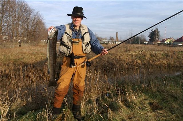 Robert Tracz (3 miejsce) z trocią 71,8 cm fot M. Kostuch