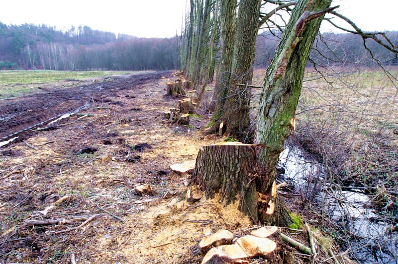 Pracownicy Starostwa Powiatowego w Lęborku i ZM i UW odkryli w gminie Nowa Wieś Lęborska dwa nowe miejsca nielegalnej, drastycznej wycinki drzew. Znajdują się one na prawym brzegu Pogorzelicy w linii stanowiącej przedłużenie połączenia lokalnej drogi z Darżewa z drogą krajową nr 6. Z jednej strony gruntowej drogi, usytuowanej prostopadle do Pogorzelicy, wycięto 56 olch o obwodzie pnia od 40 do 60 cm o wartości środowiskowej co najmniej 119 tys. zł, z drugiej natomiast strony wspomnianej drogi 115 olch o obwodzie pnia od 100 do 220 cm, o wartości środowiskowej 1,5 ml zł.