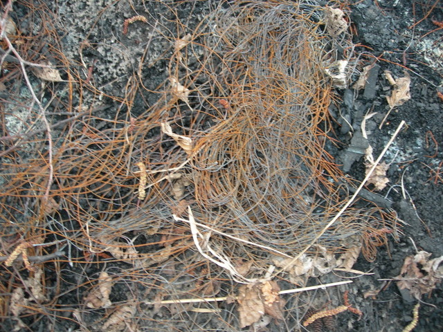 Pozostawione karpy starych drzew starano się spopielić poprzez palenie na nich opon i gałęzi. Często maskowano je dodatkowo narzucaną ziemią. Po spalonych oponach na paleniskach pozostały jedyni rdzewiejące druty zbrojeń. Maskowanie śladów nie powiodło się, stare pnie zostały jedynie nadpalone, a te, które przysypano ziemią, można zlokalizować. Według naszych wstępnych szacunków nad Łebą i jej starorzeczami na odcinku Niebędzino-Gęś mogło dojść do wycinki ponad 300 drzew, w tym drzew o zmierzonych przez nad obwodach: 377 cm, 368 cm, 236 cm. Rosły wiele lat, nie przeżyły ataku cynicznego wyrachowania.