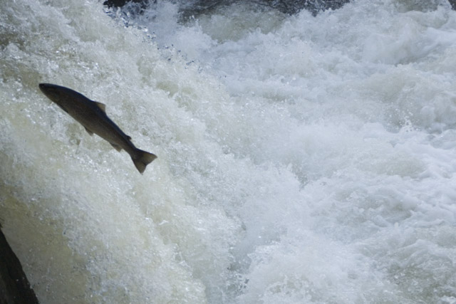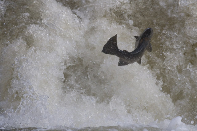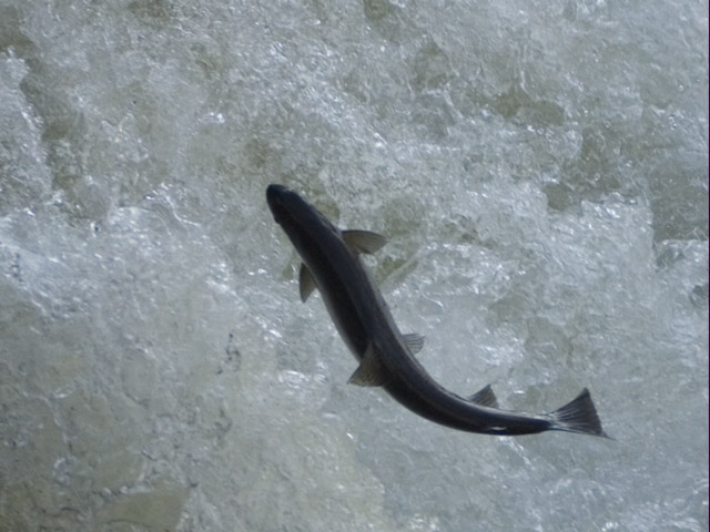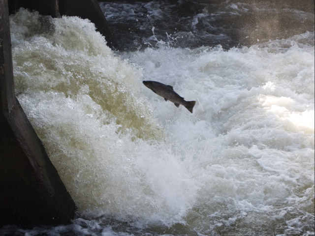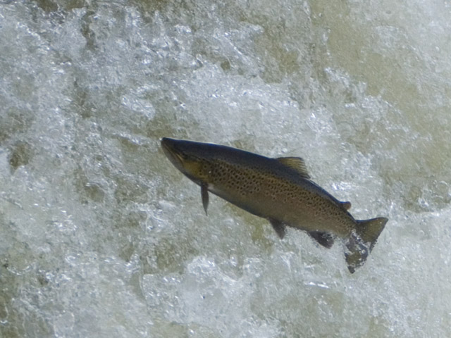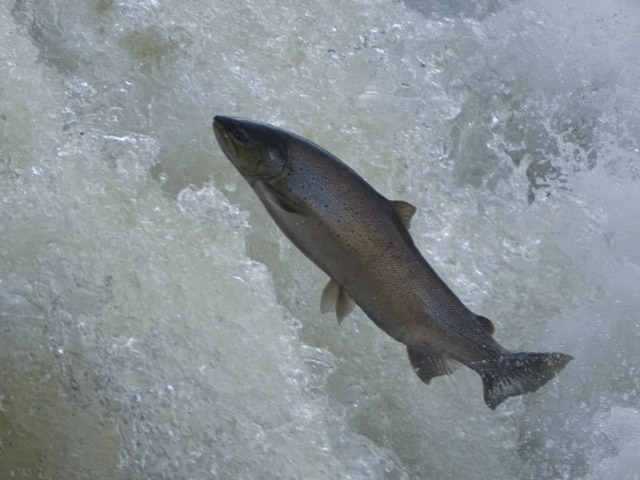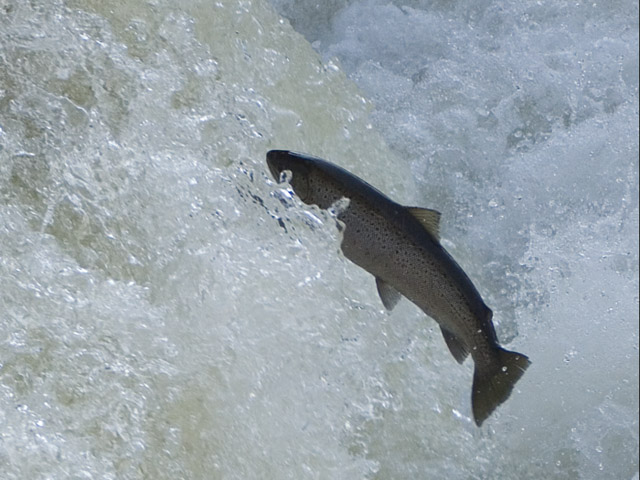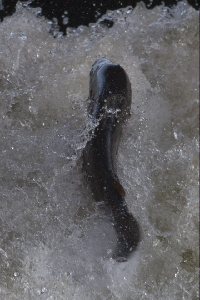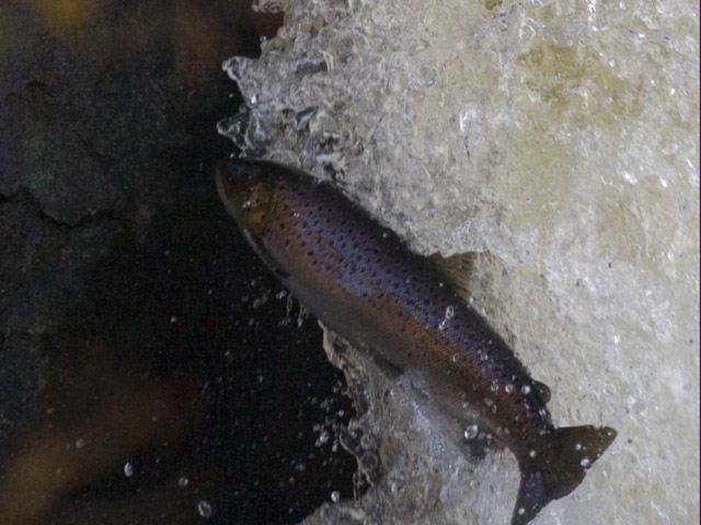 Trociowe gody trwają, na tarliskach codziennie pojawiają się nowe osobniki. Intensywność ciągu tarłowego łatwo można ocenić w Chocielewku, gdzie część ryb wędruje przepławką, a część z rozpędu forsuje piętrzenie, korzystając ze specjalnej konstrukcji zainstalowanej w środkowym przęśle jazu. Poniżej prezentujemy wykonane tam zdjęcia autorstwa Pana Bogusława Kotlarza.