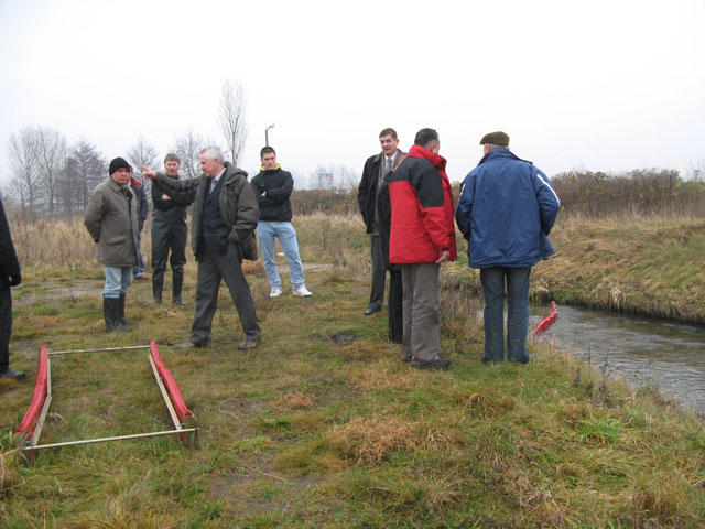 Pokaz zorganizowała firma z Gdyni, zajmująca się m.in. dystrybucją produktów czeskiego producenta REO AMOS, przeznaczonych do prewencji i likwidacji awarii oraz dla bezpiecznego i czystego środowiska. W pokazie udział wzięli: wójt Gminy Nowa Wieś Lęborska oraz przedstawiciele: Komisji Ochrony Środowiska, Rolnictwa i Leśnictwa Rady Powiatu Lęborskiego, Starostwa Powiatowego, PZW, TPRŁ oraz WZMiUW. Zaprezentowano również segment zapory drabinkowej RE 0788 do użycia podczas akcji i stałej prewencji na ciekach z przepływem nurtu do 1,3 m/s. Pokaz związany był z poszukiwaniem najlepszego wariantu systematycznego oczyszczania dorzecza Łeby z zanieczyszczeń stałych.