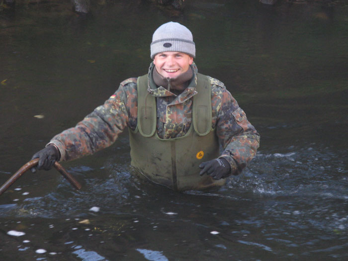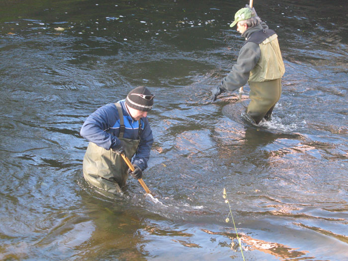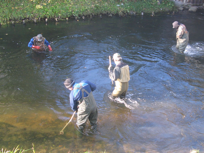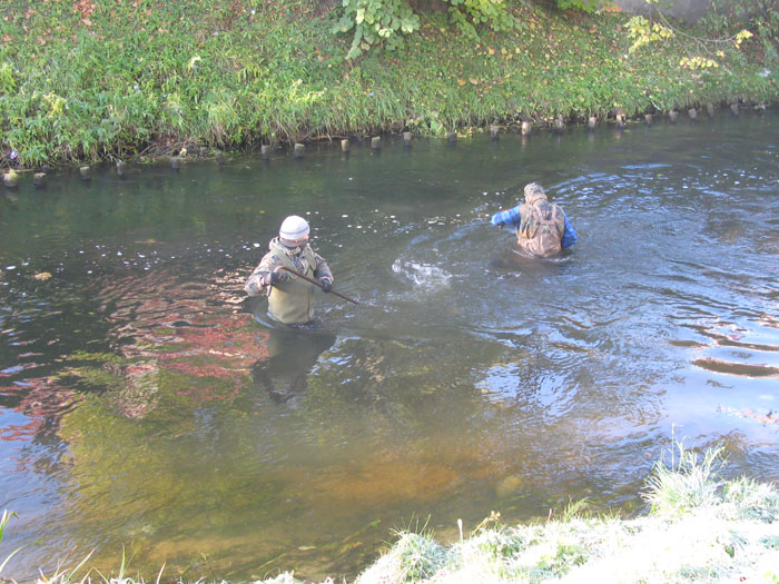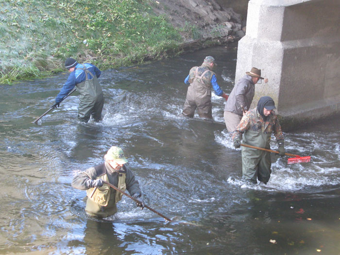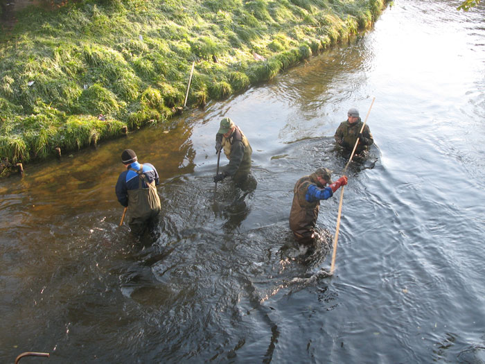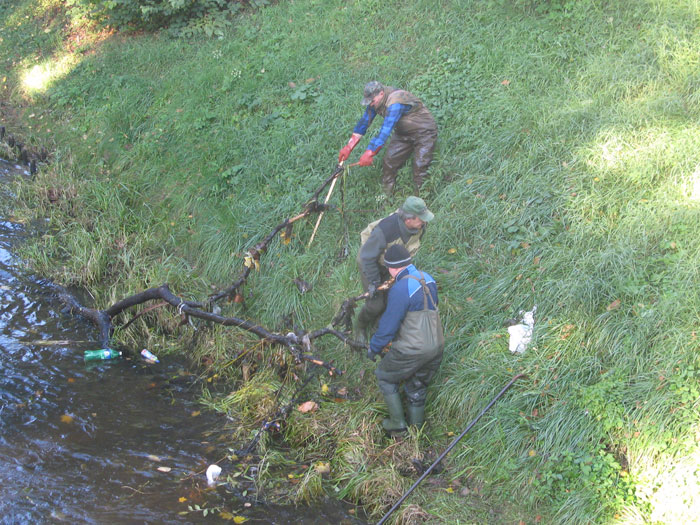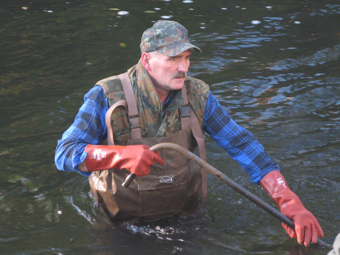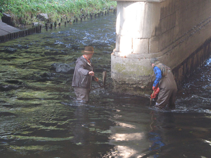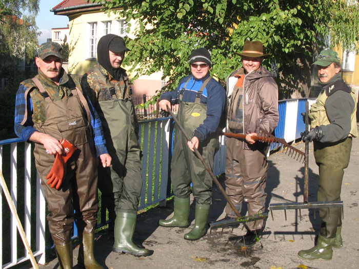 Koło PZW Lębork-Miasto dostarczyło nową wersję specjalnie przygotowanych na tę okazję praktycznych grabi. Tradycyjnie jak co roku grupa ludzi w spodniobutach pracująca w rzece Łebie w centrum miasta wzbudzała spore zainteresowanie przechodniów.