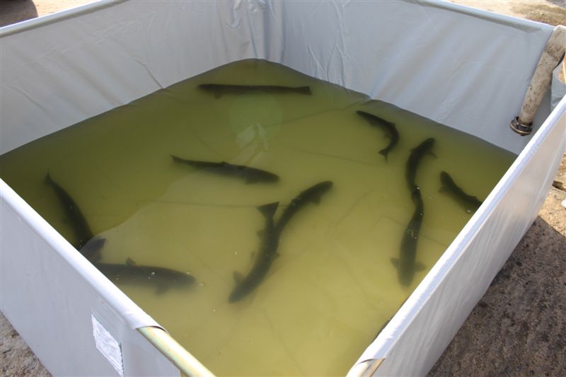 Po pobraniu ikry i oznakowaniu ryby odpoczywają w dużych basenach z wodą.